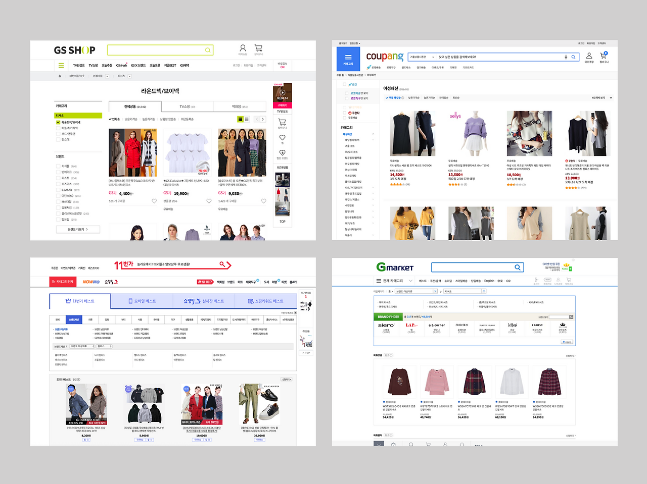 이처럼 카테고리 페이지는 전자상거래 서비스 다루는 상품의 특성에 따라 다양한 형태로 1차, 2차, 3차 분류될 수 있으며 각 페이지에서 제공되는 내용 또한 달라집니다.