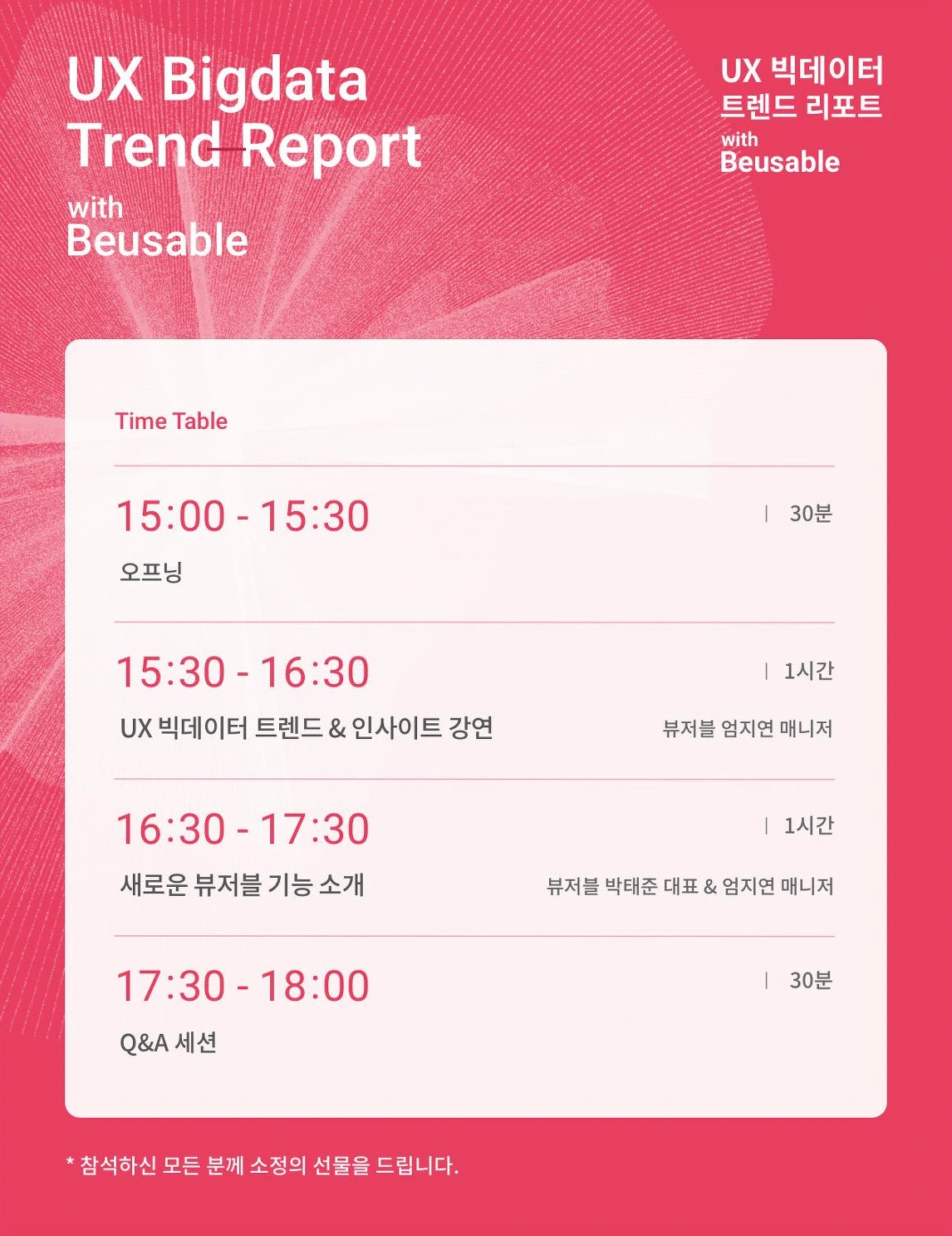 UX 빅데이터 기반으로 연구한 뷰저블 사례를 함께 나누며 여러분의 다양한 시각과 인사이트를 공유하는 시간이 되었으면 합니다.