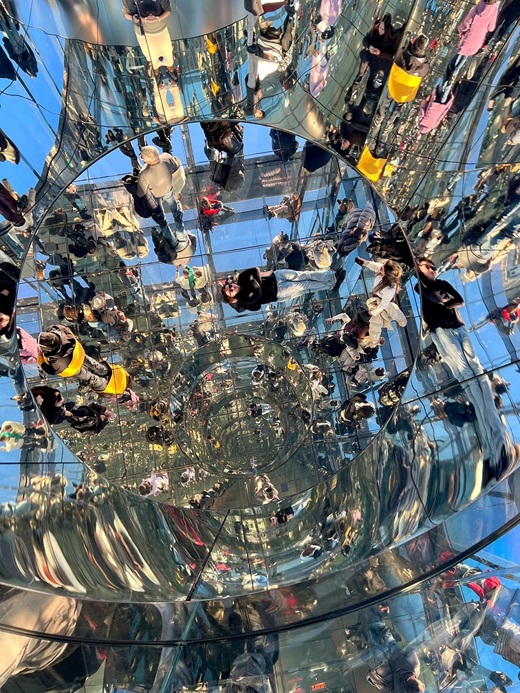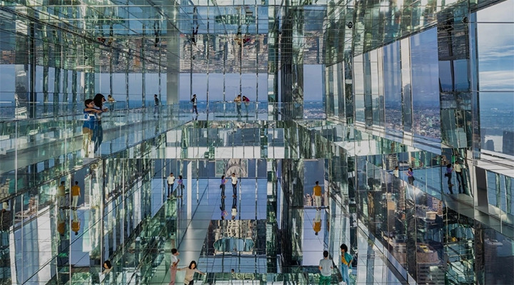 한 층은 거울로 반사되어 무한대로 이어지는 작품 같은 공간으로 멋진 사진을 찍을 수 있기에 인기가 많다.