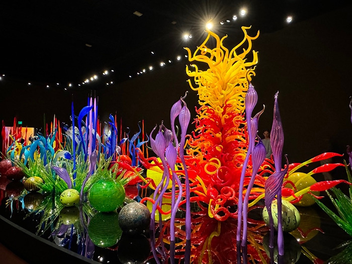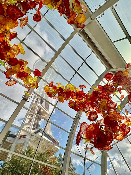 시애틀의 랜드마크인 스페이스 니들 타워와 그 근처에 팝컬처 뮤지움, 유리 공예가인 치훌리 Chihuly 작품전등 다양한 볼거리들이 함께 있다. 그곳에는 근사한 큰 놀이터가 있는데, 5년 전 방문 때 아이들이 그곳에서 한 시간여를 놀았다. 그런데 이번에는 그 시간동안 놀이터가 아닌 치훌리 작가의 작품전을 구경할 수 있었다. 라스베이거스 유명 호텔인 벨라지오에 그의 작품이 로비에 전시되어 있다. 천정에 큰 꽃들로 만들어진 유리작품들이다. 그의 아름답고 화려한 유리 공예 작품들과 관련 책, 그리고 간단한 유리공예 쇼를 볼 수 있었다.