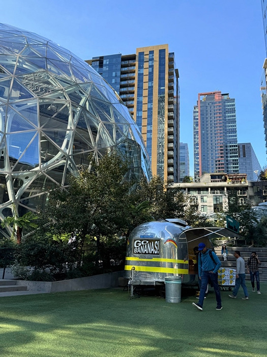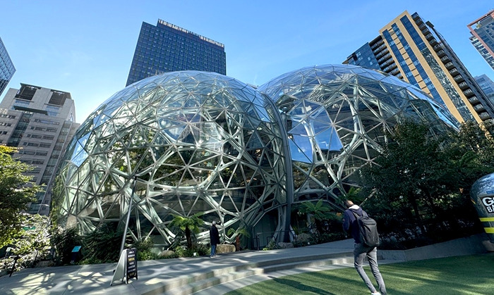 또한 시애틀에 새로운 랜드마크가 생겼는데 그것은 더 스피어란 미래형 스타일 건축물이다. 아마존 건물인데 4시 이후에 여는 레스토랑을 방문할 수도 있다. 혹은 한 달에 한번 예약한 일반인들에게 빌딩 내부가 공개되는데 우리 일행이 갔던 토요일은 개방되지 않는 날이라 아쉬웠다.