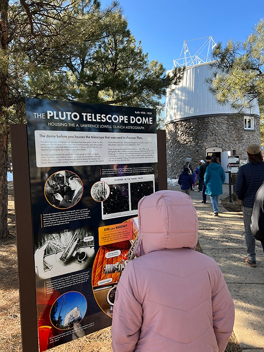 우선 로툰다 박물관에서 설명을 들은 후, 안내자를 따라 플루토 디스커버리 망원경을 구경했다. 지금은 명왕성이 퇴출되었다지만, 한 때는 행성으로 인정을 받았던 별을 처음 발견한 곳이라는데 의미가 있다고 생각한다. 특히 박물관에서 한걸음 한걸음 걸어가는 거리에 태양계 이름 하나하나 적힌 푯말이 있었다. 그 끝에 명왕성과 관측소가 있다. 작은 좁은 계단을 올라가면 작은 관측공간이 나오고, 당시 하늘을 들여다보던 오래된 망원경이 있었고, 나무 천장이 눈에 들어왔다. 5분 여정도 안내인의 설명을 들었고, 그곳에 플루토 타임캡슐등의 여러 가지 물건들이 그대로 전시되어 있었다.