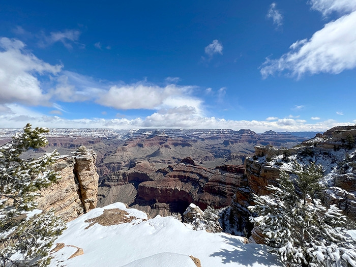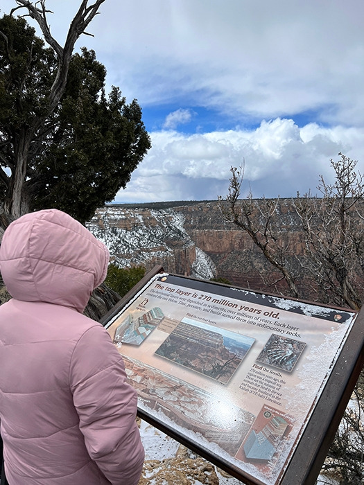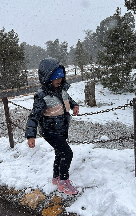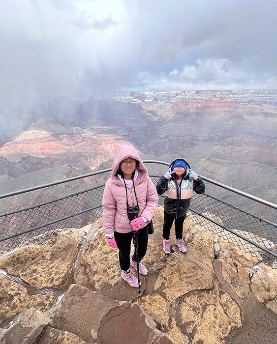 일주일간 우리는 많은 날씨를 겪었다. 어떤 날은 일기예보에 없던 눈보라로, 그랜드캐년에서 차들이 미끄러지고, 눈밭에 고꾸라져 전복된 차량들이 보였다. 또 어떤 날은 숨을 쉴 수 없고 앞으로 걸어가기도 힘든 거센 바람에 머리카락은 90도로 꺾여 흉하게 날렸다. 가끔 180도, 머리카락이 하늘로 치솟기도 했다. 비니를 쓰고 후드를 뒤집어 썼다. 바람에 함께 날려오는 사막 모래에 눈을 찌푸리고 얼굴은 따끔거렸다. 정말 어디서 고글이라도 구해오고 싶었다. 그나마 마스크를 쓰면 모래를 들이켜지 않았다.