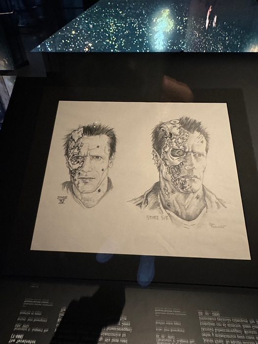 <터미네이터> 콘셉트 디자인, <월리>의 여러 스케치와 모형들, 일본만화 <아키라>의 원본 그림, <피노키오>의 애니메이션 촬영했던 그의 집등을 볼 수 있다. 또 H.R. 기거가 디자인했던 오리지널 <에일리언>의 머리가 전시되어 있어 놀랍고 반가웠다.