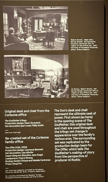 어릴 때 보았던 명작 <대부>. 출연자들의 의상과 책상 등 프로덕션들이 전시되어 있었다. 알파치노를 직접 만난 적은 없지만 의상을 보니 생각보다 더 작아서 놀랐다. 그 외 <타이타닉>의 남녀 주인공이 입었던 의상, 교통사고로 요절한 미남 배우 '제임스 딘'이 영화에서 입었던 의상, <오즈의 마법사> 도로시가 신었던 빨간 구두, 레오나르도 디카프리오가 <위대한 게츠비>에서 입었던 핑크 양복 외에 여러 영화 속 기억에 남는 영화 의상들이 전시되어 있었다.