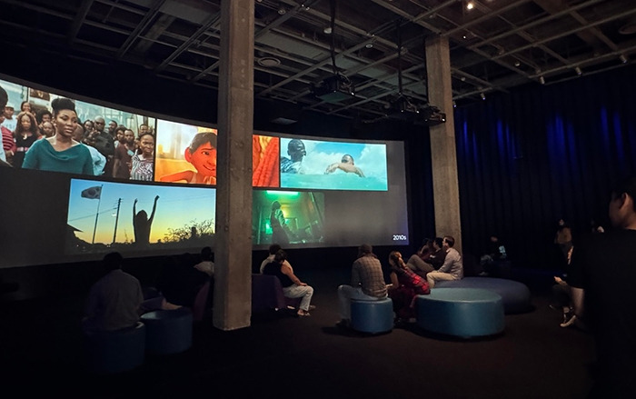 '시네마 이야기 1' Stories of Cinema 1 공간에는 사람들이 편하게 큰 소파에 앉아 1800년 후반 영화부터 최근까지 영화를 15분으로 단축해 보여주는데, 영화의 발전과정을 짧게 한눈에 볼 수 있어 흥미롭다. 오래전 읽었던 영화 역사책인지 교과서였는지는 무척 딱딱했다. 필름역사를 알고 싶어 읽은 책인데 무료하기 짝이 없었던 기억이 있다. 그런데 이 15분은 영화 초보자도 한눈에 흐름을 파악할 수 있게 시대별로 영상을 편집 정리해 방영하고 있었다.