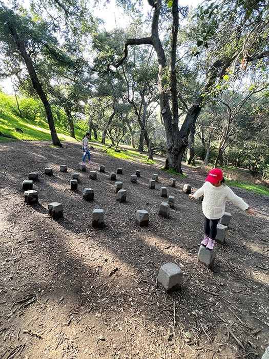 헤엄치는 잉어 개수를 세고, 작은 시냇가를 깡충 거리며 건너기도 하고, 숲 속 미로를 따라 나무 사이를 뱅뱅돌기도 했다. 잠자리가 날아다니는 시기가 오면 이쁜 색상의 잠자리를 만날 수 있는데, 아이들은 특히 하늘색 잠자리를 좋아했다.