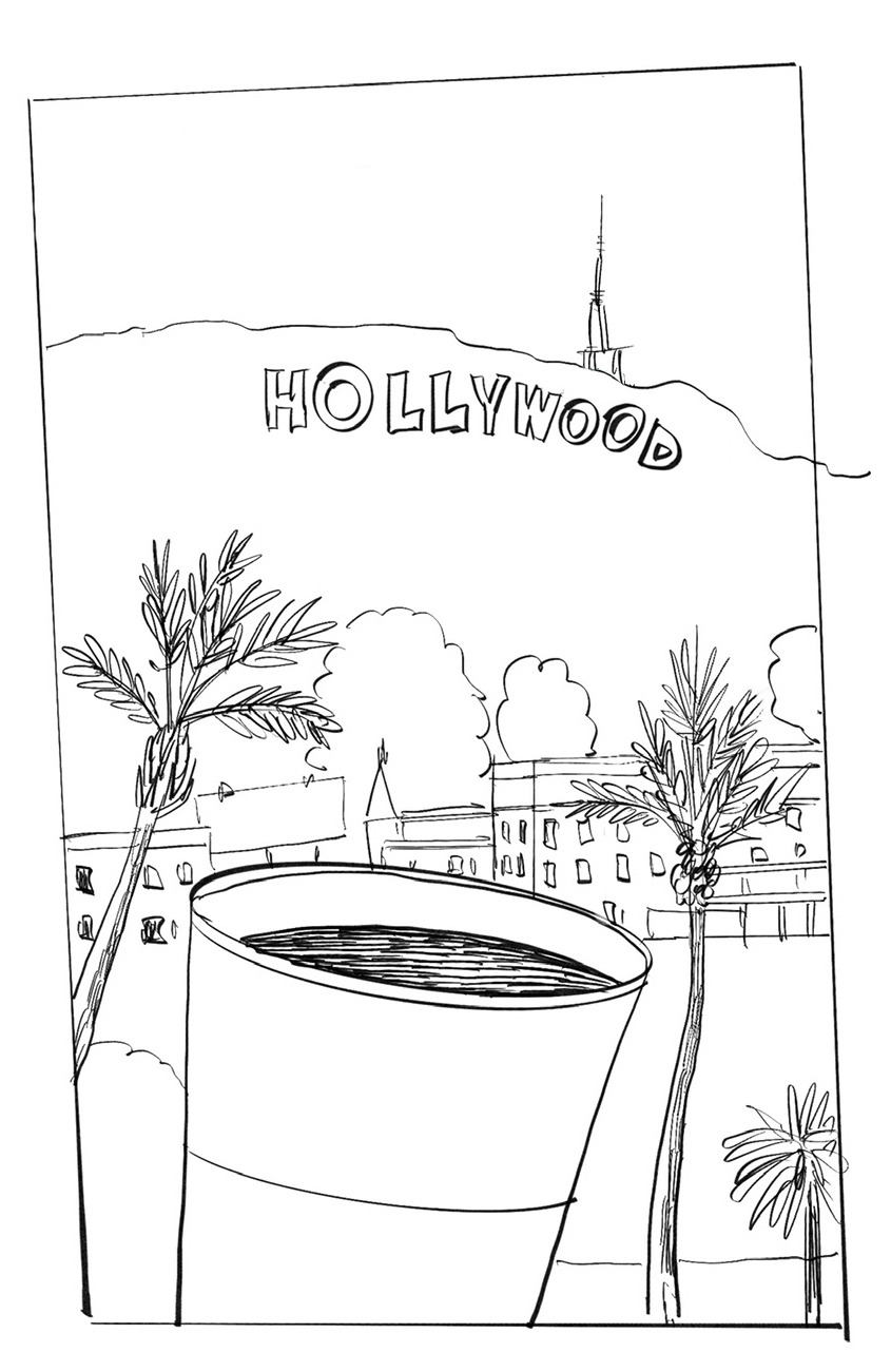 시원한 바람이 머리카락을 살짝 치고 지나며 목덜미를 식혀주면 특별히 에어컨이 바람이 필요 없다. 그곳은 그렇게 분주하기만 한 곳에서 잠시 편한 휴식을 즐기수 있는 공간이다. 가끔 사람들이 헐리웃 사인을 배경으로 사진을 찍기에 풍경을 음미하는 내 시야를 가리기도 하지만, 관광지이니 만큼 너그러이 웃으며 괜찮다고 눈인사해준다. 잠시 커피멍을 때리면서 멀리 사인을 바라보면 여러 가지 잡다한 생각이 든다.