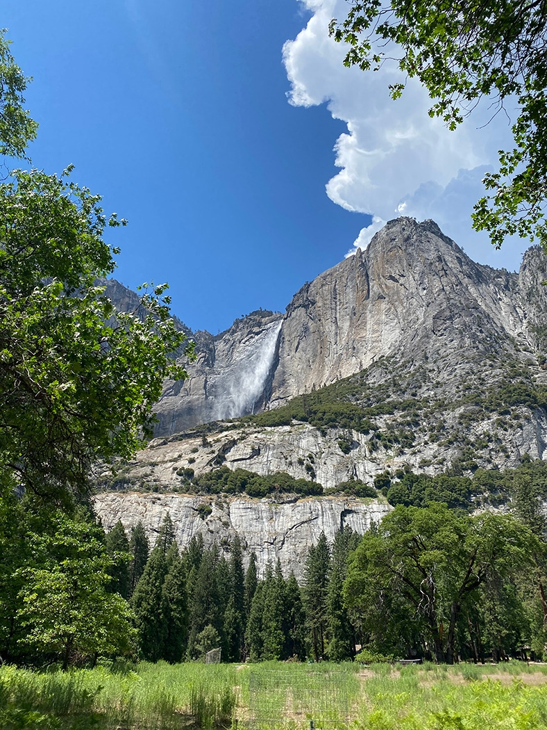 계절마다 느낌이 다르다고 하는 곳으로 실제 그곳을 다녀온 후 다시 다른 계절에 가고 싶은 마음이 간절했다. 우선 우리는 오토캠프장에 숙소를 마련했으므로 차를 타고 30여분 정도 가야 했다. 입구로 진입하여 들어오다 보면, 브라이들 베일 (braidalveil fall) 폭포와 큰 바위산이 장관을 이루며 반겨준다. 요세미티는 규모가 큰 국립공원이라 며칠 여유를 두고 하이킹 계획을 추천하고, 그 안에서 하이킹, 암벽 타기, 자전거 타기, 계곡 수영 등 여러 가지 액티비티를 할 수 있다.