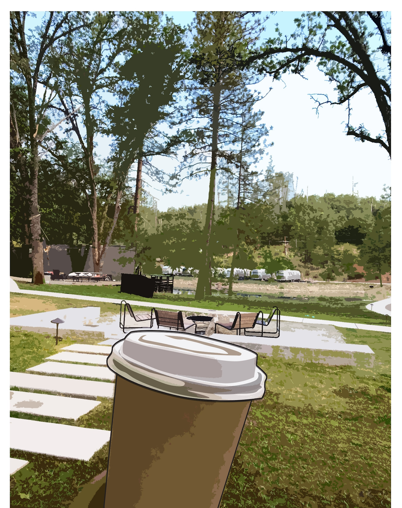 새벽에 가면 매점 옆에 커피포트들이 줄 서 있고, 그때 따뜻한 하우스 커피를 마실 수 있지요. 커피 한잔 들고 나와, 패티오에 싱글 침대 사이즈만큼 큰 흔들의자에 앉아 혼자 새벽 멍을 때려 봅니다. 그 누구의 방해도 받지 않는 저만의.. 시간과 공간.