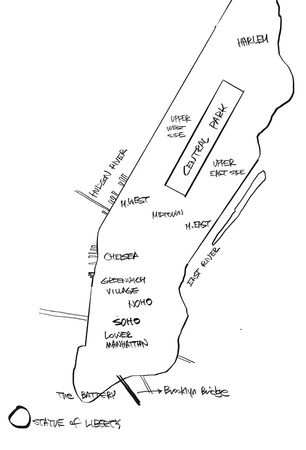 맨해튼은 크게 어퍼맨해튼(Upper manhattan), 어퍼 웨스트 사이드 (Upper west side), 어퍼 이스트사이드 (upper East side), 미드타운 맨해튼 (Midtown manhattan), 첼시 (Chelsea), 그리니치 빌리지 (Greenwich Village), 트라이베카(Tribeca), 로우 맨해튼 (Lower Manhattan), 로우 이스트 사이드(Lower East side) 등으로 굵직하게 지역이 나누어져 있어요. 그외 크고 작은 빌리지들로도 나눠져 있지요