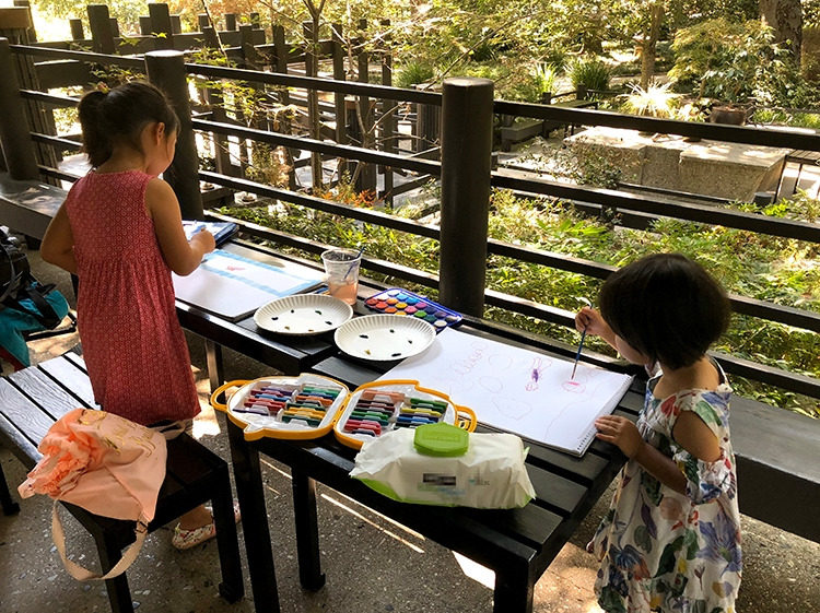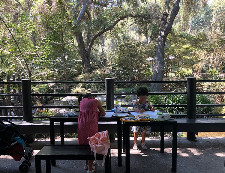 그늘에 테이블까지 있어서 아이들이 그림 그리기 딱 좋은 자리였다.
