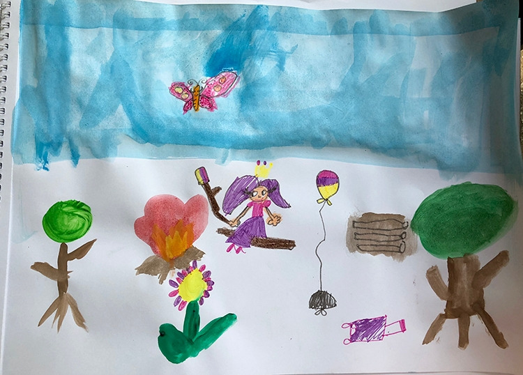조금 뒤 그림을 들여다보니, 한창 캠핑을 가고 싶다며 조르던 여섯 살 아이는 눈앞 풍경을 보며 캠핑장을 그리고 있었다.