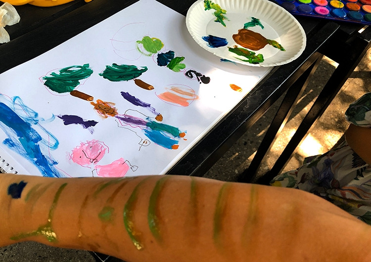 눈앞에 펼쳐진 풍경과 비슷한 거라곤 초록색 물감 밖에 없었지만 아이들은 즐겁게 본인만의 풍경화를 그렸다.