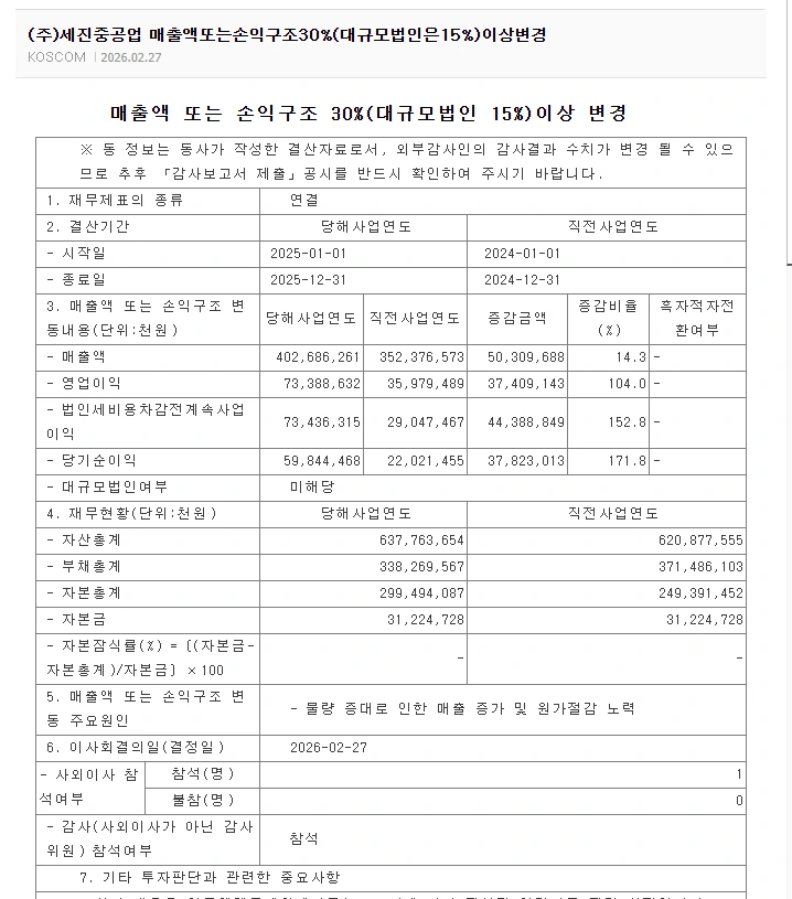 2025년 실적이 워낙 좋아서 30%이상 변경 공시도 나왔네요. ^^