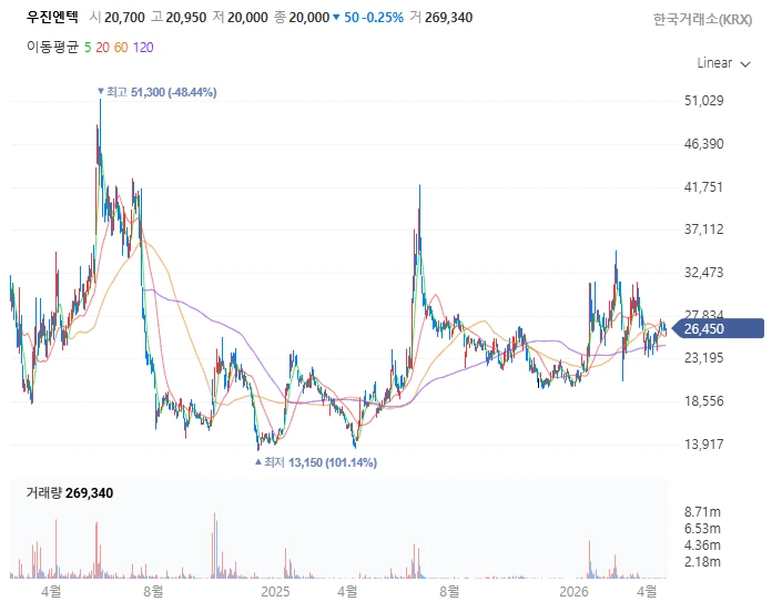 우진엔텍의 연간실적 흐름은 다음과 같습니다.