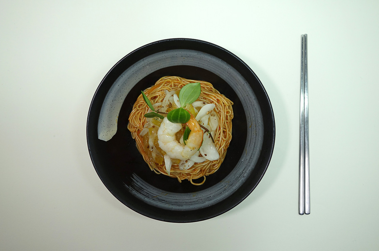 이 음식은 남미를 여행하던 중 처음 만들게 되었다. 경비를 아끼기 위해 항상 시장에서 재료를 사다가 요리해 먹었고 주로 만들었던 메뉴는 토마토를 볶아 넣은 파스타였다. 어느 날, 평소처럼 토마토 파스타를 만들다가 문득 얼큰한 국물 요리가 먹고 싶어졌다. 그래서 토마토를 볶던 팬에 육수를 부어 면와 함께 끓여냈다. 그렇게 만들어낸 ‘토마토 국물 파스타’에는 예상 외로 깊은 풍미가 있었다.