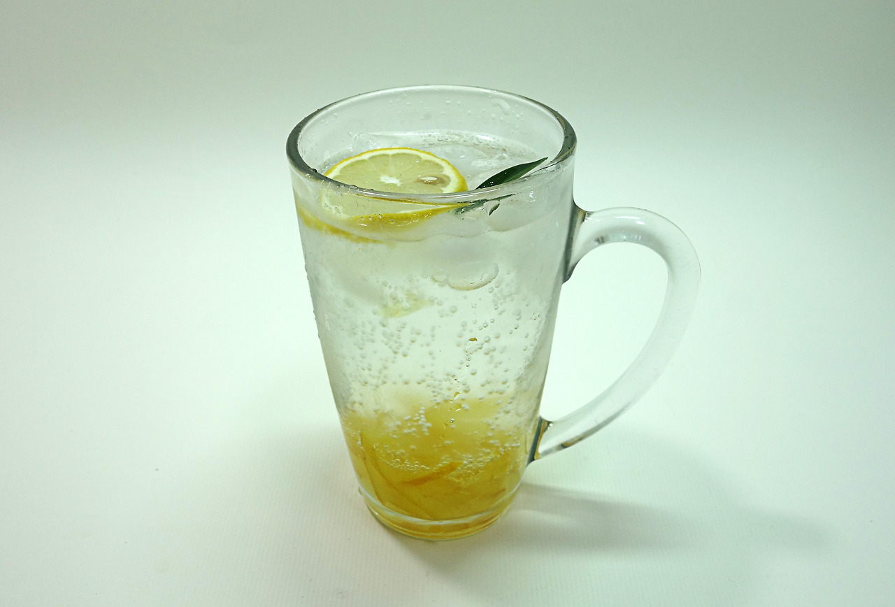 유자청 3스푼과 탄산수 150ml를 얼음과 함께 담고 레몬슬라이스로 장식한다.