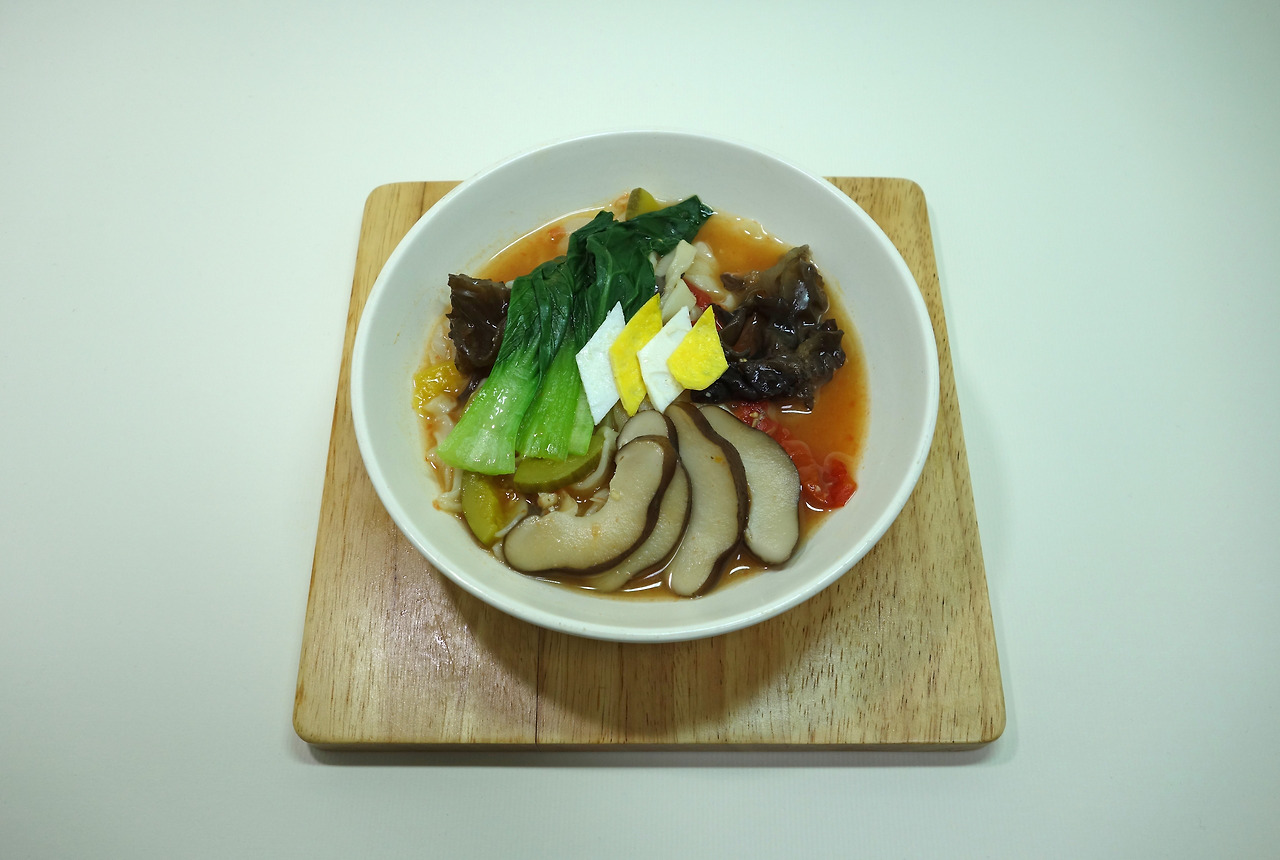 토마토와 세 종류의 버섯, 갖은 채소들을 함께 끓여내 시원하고 얼큰한 국물 맛을 즐길 수 있는 토마토 칼국수, 코판 라이스의 덴마크 손님에게 선보일 첫 번째 메뉴다.