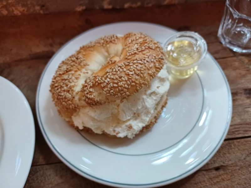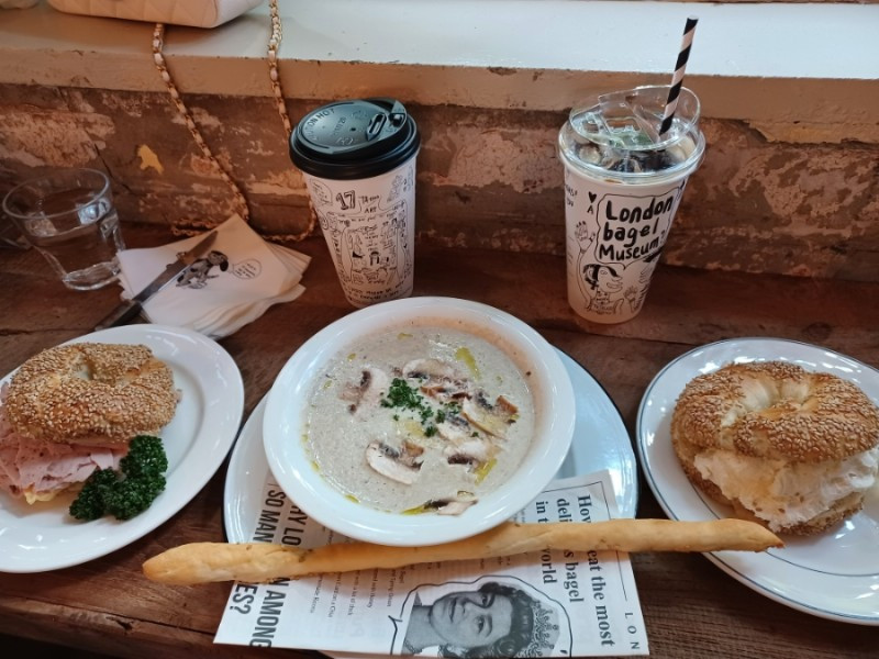 머시룸수프, 잠봉뵈르 베이글, 그리고 역시나 나는 크림치즈 베이글을 선택했다. 꿀에 푹 찍어 먹으니 당연히 맛이 없을 수가 없다. 분위기도 맛도 좋지만 개인적으로 오랜 웨이팅까지 견디기에는 세상에 맛있는 베이글이 너무 많기에 한 번 경험한 걸로 만족한다. 왜냐면 우리 집 바로 앞에도 베이글 맛집이 있기 때문이다.