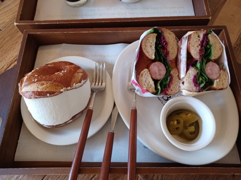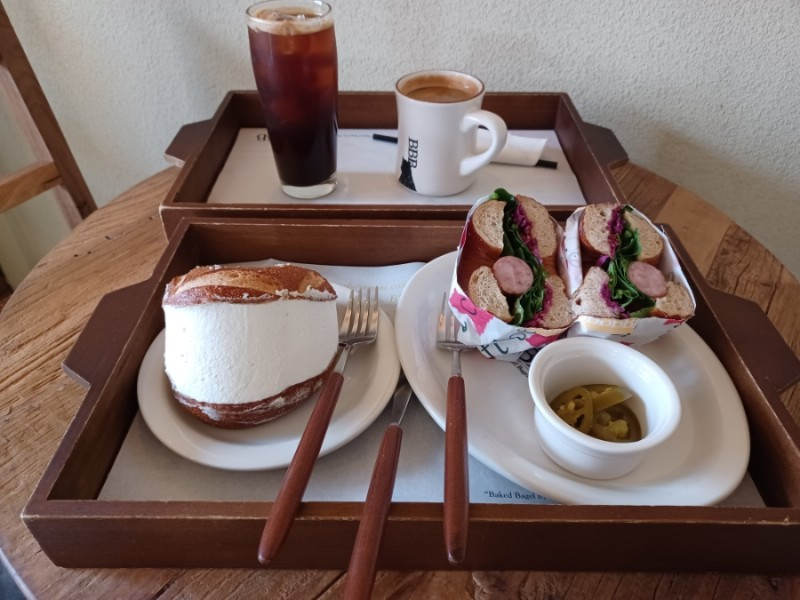고심 끝에, 우유크림 베이글과 소시지 베이글 샌드위치로 골랐다. 일단, 압도적인 크림의 양부터 마음에 들었고, 다 먹을 때까지 눅눅하거나 질겨지지 않았던 쫄깃하고 부드러운 식감도 좋았다.