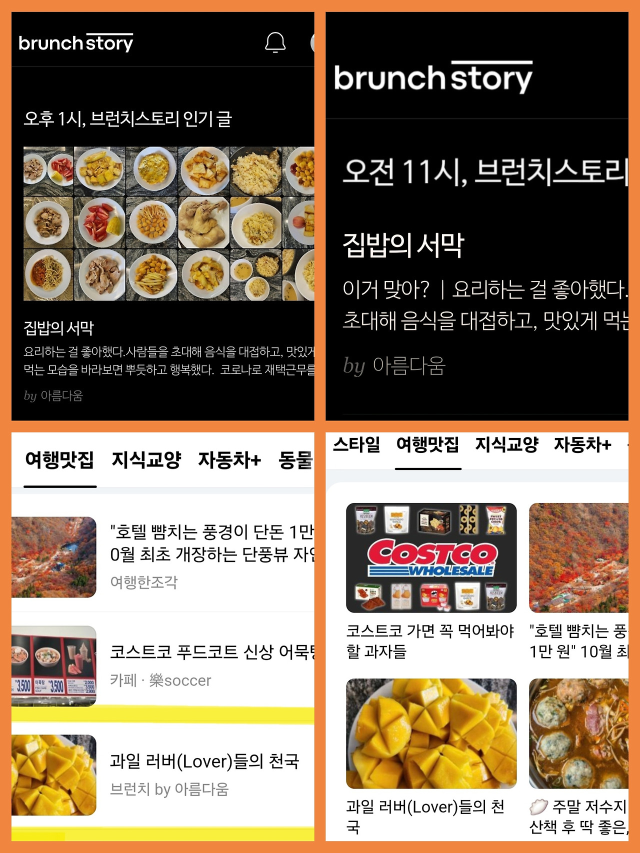 (2) 연재 중인 브런치 북 《생애 첫 한 달 살기는, 치앙마이에서》 제5화 <집밥의 서막>, 제6화 <과일 러버(Lover)들의 천국>이 브런치 에디터 픽과 다음 메인 화면에 각각 선정되었다.