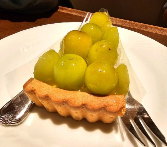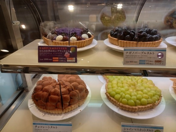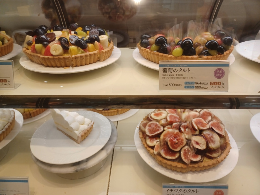 남바파크스로 가 본다. 1층부터 쭉 보고 행복이, 사랑이에게 선택권을 줬는데 이곳으로 정했다. 풀네임은 Tarte & Cafe Delices Namba Parks이고, 일본 전역에 체인이 있는 유명한 타르트 카페였다. 진열장을 가득 채운 아름다운 타르트 중 행복이는 샤인머스캣 타르트를, 사랑이는 핼러윈 타르트를 골랐다. 타르트 및 케이크의 가격은 조각당 1000엔에서 1300엔 사이로 가격대는 살짝 있는 편이다.