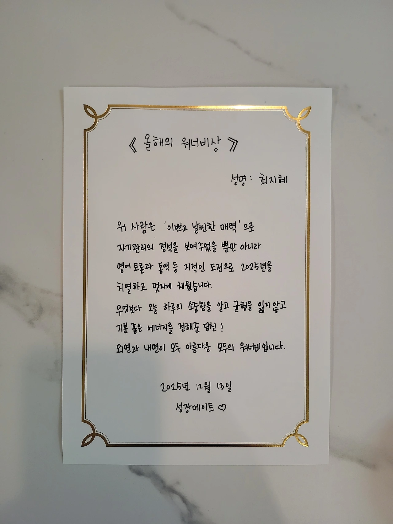 2025년을 나처럼 애쓰며 하루를 견뎌온 누군가에게 이 말을 전하고 싶다.