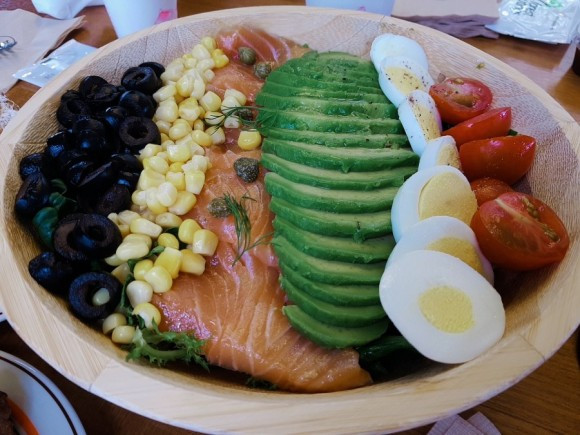 연어 샐러드도 빠질 수 없다. 아보타도와 연어의 궁합은 환상적이다. 이 둘을 유일하게 좋아하는 건 우리 집에는 나뿐이라 가족 외식에서는 배제하는 음식으로 친구들 모임에서 주로 주문하는 메뉴이다.