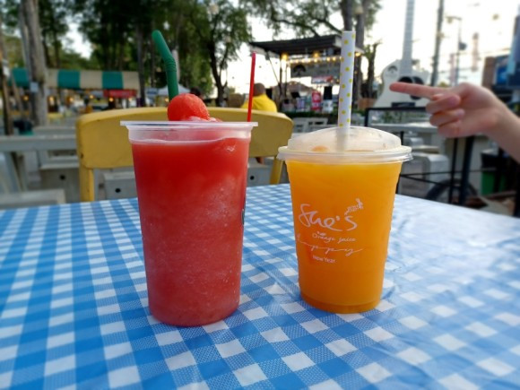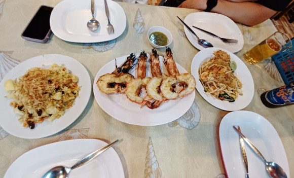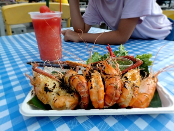 행복한 사유의 기쁨을 만끽한 후, 우리의 최종 선택이다. 오렌지 주스도 찐하고 맛있었는데 땡모반은 예술의 경지였다. 1순위였던 바비큐는 달콤, 짭짤하면서 매콤함까지 겸비했으며, 새우구이와 피자도 맛있었다.