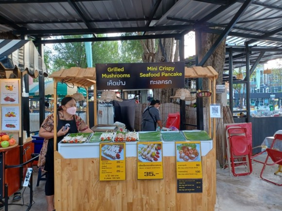 여기 안 왔으면 어쩔 뻔했나 싶다. 2023 태국 여행에서 가장 좋았던 곳 중 하나. 순도 100% 내 스타일이다. 공기부터 음식, 맛, 정취, 분위기 모든 것이 마음에 든다. 정말 너무 예쁘다. 개장 전이라 먼저 부스를 둘러본다. 나에게는 가장 행복한 순간이다. 테이블도 많고 후아힌 야시장에 비해 훨씬 깨끗했으며 음식 종류도 다양했던, 관광객들에게 최적화된 로컬마켓이다.