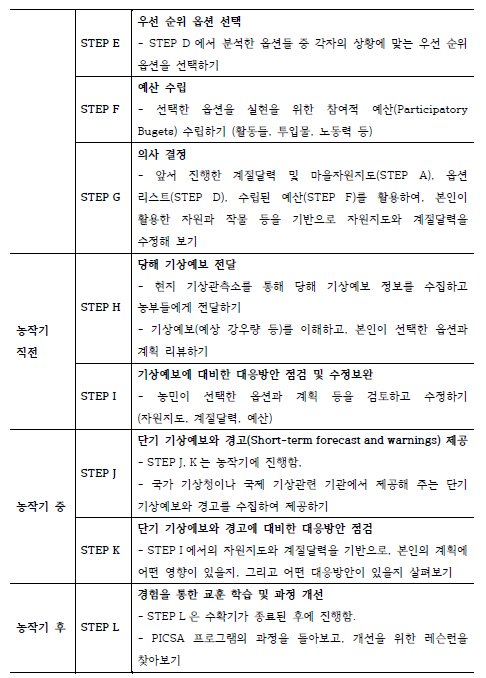 4.1.2. 프로젝트의 특징: 참여적 농업 기후정보 통합서비스(PICSA)