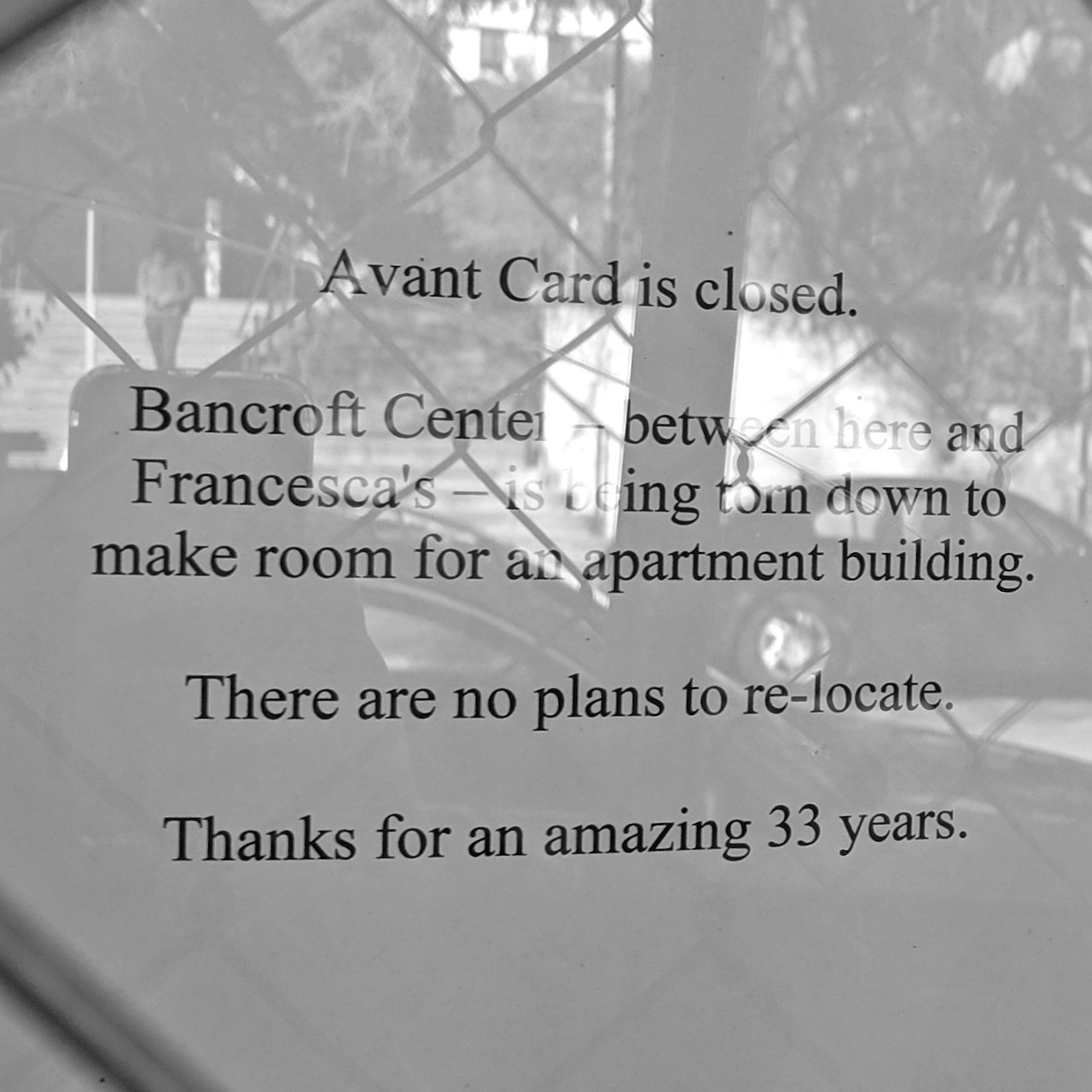 훗날 내가 버클리를 떠날 때 그리워할 만한 가게들이 몇 군데 있다. 캠퍼스 바로 앞에 있는 아방 카드(Avant Card) 또한 그런 가게들 중 하나였다. 그러나 그 가게를 그리워하게 될 순간은 내 생각보다 빠르게 찾아왔다. 그 가게가 자리 잡은 건물이 아파트 신축으로 인해 헐렸기 때문이다. 비록 내가 버클리에서 지낸지는 1년이 조금 넘는 시간이었다고 하더라도 그 가게는 내게는 의미 있는 가게다.