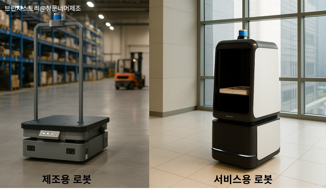 제조용과 서비스용이라는 경계는 명확하지 않다. 청소 로봇이 공장 바닥을 닦으면 제조용이고, 건물 바닥을 닦으면 서비스용이 된다. AMR(자율 주행 로봇)이 제조 현장의 자재를 나르면 제조용 로봇이고, 배달 음식을 나르면 서비스용 로봇이 된다. 로봇 제조사 입장에서 둘의 기술이 다르지 않고, 목표 시장이 다른 것이다.