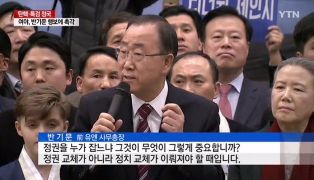 - 한경닷컴, 이미나 기자, 2017년 1월 13일 자, “반기문 전 유엔 사무총장 귀국 메시지 '정권교체 아닌 정치교체' 무슨 뜻?”
