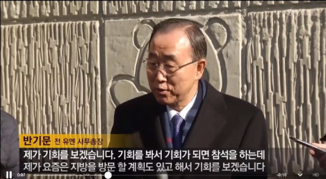 - 중앙일보 페이스북 계정, 2017년 1월 14일 자, "[반기문 고향 방문] '촛불집회 참석할 계획 있느냐'는 질문에…"