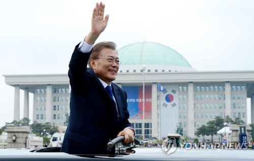 - 연합뉴스, 홍해인 기자, 2017년 5월 10일 자, "취임식 마치고 청와대로"