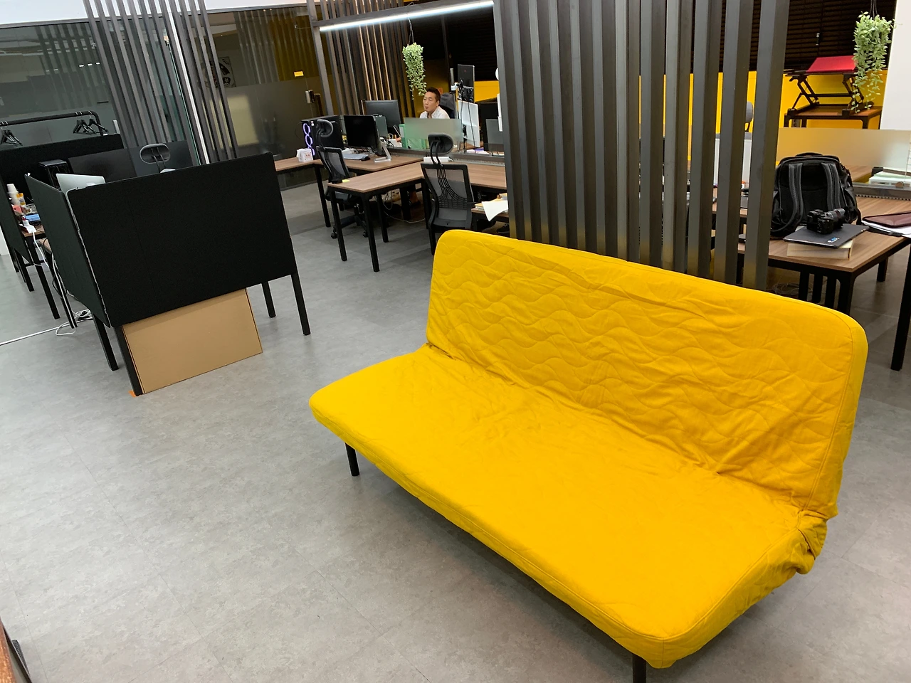 오늘 오전 비욘드스페이스 신내점 멤버와 점심을 먹다가, 신내점에 누울 곳이 있었으면 좋겠다는 의견을 들었습니다. 그 멤버는 영상편집을 주로 하는 멤버라 밤을 새는 경우가 많습니다. 그래서 장시간 작업중에 잠시라도 누울 곳이 필요했던 것이죠. 출발 시간은 12:20분, 오후 3시에 신규멤버 미팅이 있었고 저녁에 가면 차가 막힐것이고, 내일 가려면 다른 스케쥴로 일정이 계속 미뤄질듯 했습니다. 그렇다고 인터넷으로 구매하자니 직접 보고 만져볼 수 없어서 망설여졌습니다. 그래서 일단 출발합니다. 고양 이케아 가구점으로 달려갔습니다. 그리고 침대 기능이 가능한 3인 쇼파를 빠르게 구매합니다.