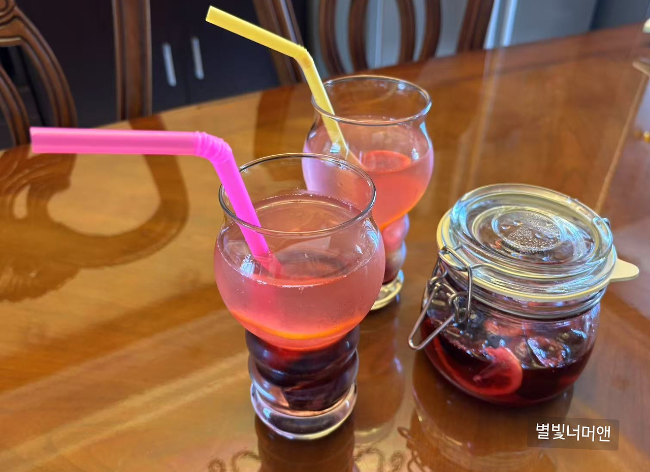 탄산수에 체리청을 타서 드렸답니다.