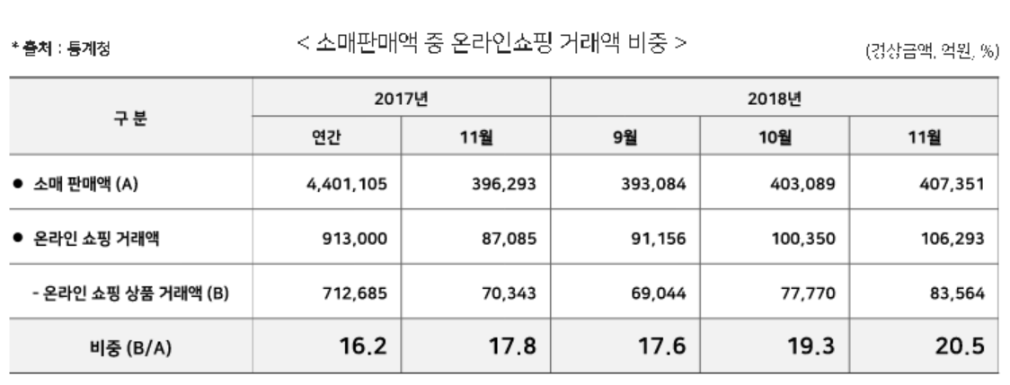 그림 3. 원더스가 바라본 휴대폰 단말기 온라인 유통시장 현황 (출처: 통계청)