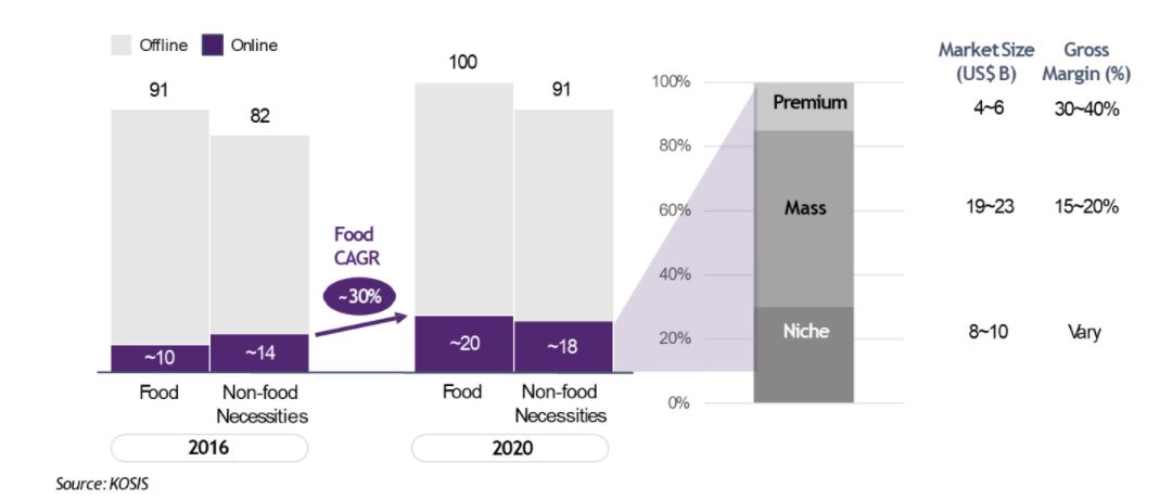 그림 1. 온·오프라인 채널별 식품시장 규모 (출처: 통계청)