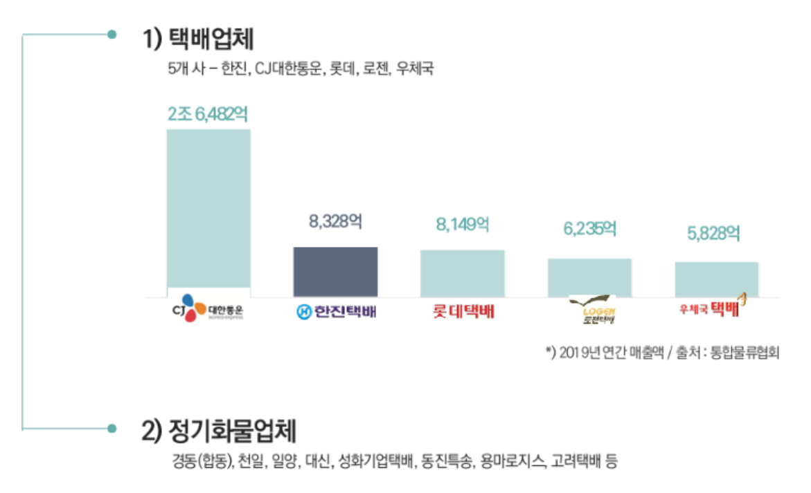 그림-4. 국내 주요 택배사 매출 및 정기화물업체 현황