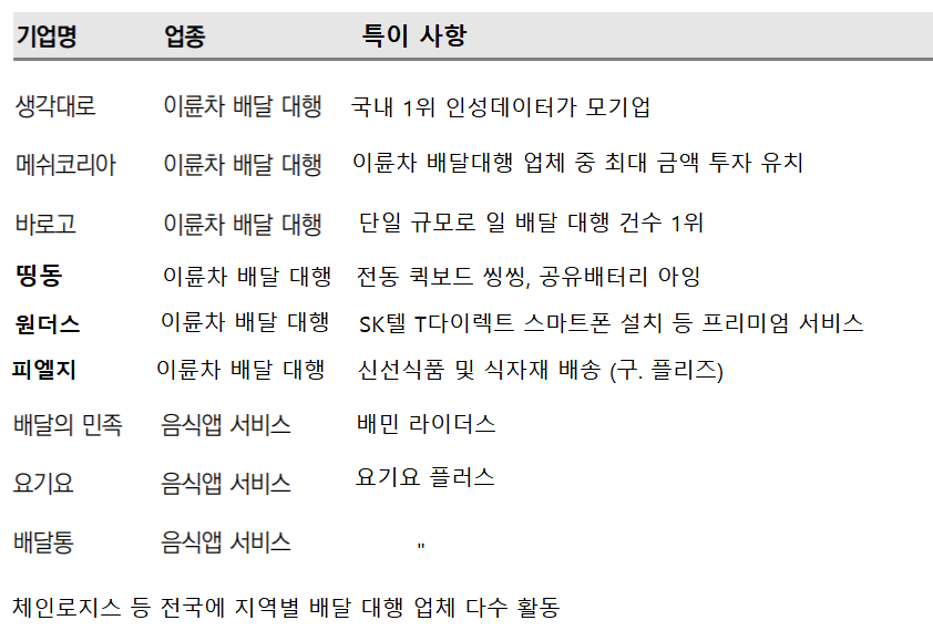 그림-5. 국내 배달 대행 업체 현황