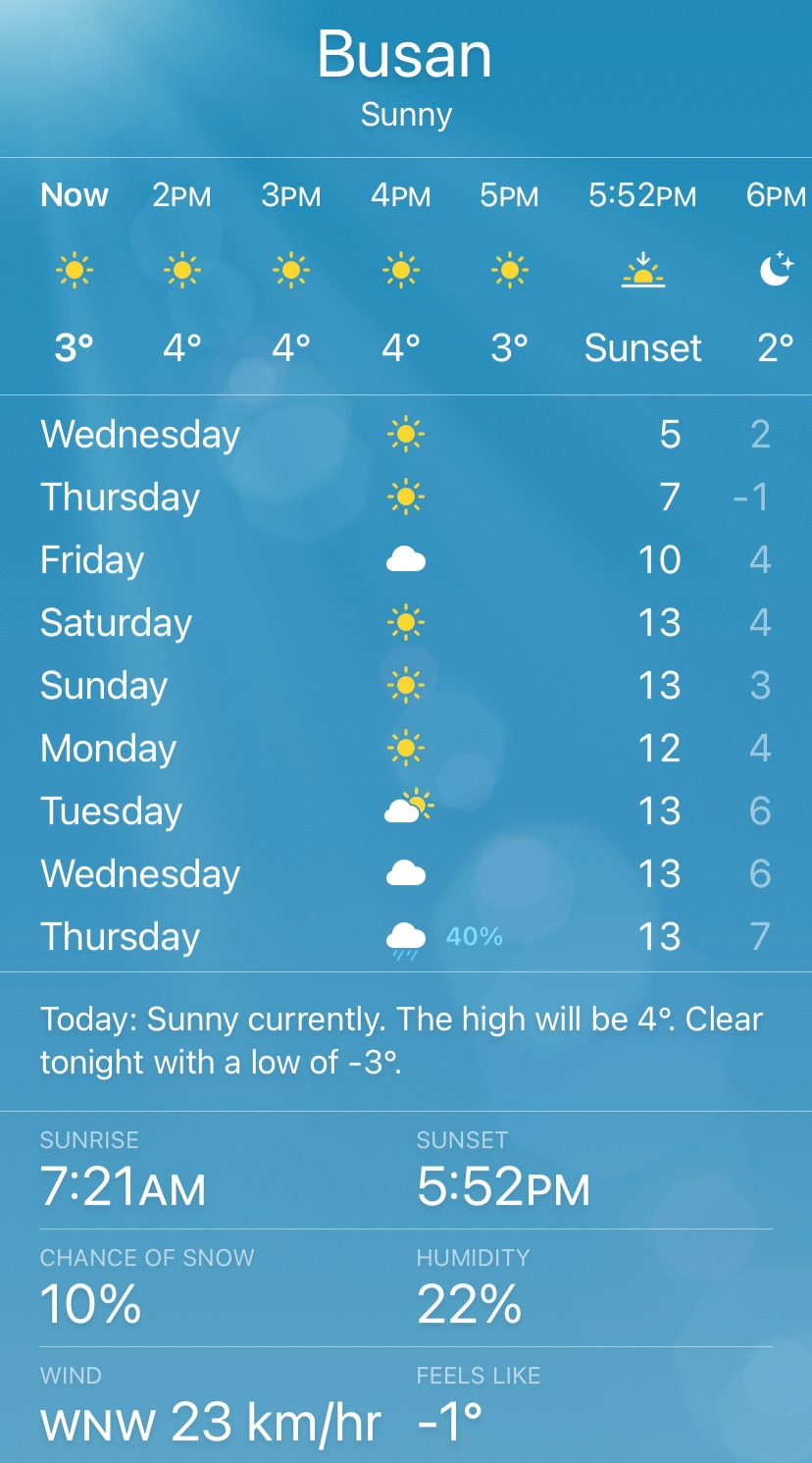 이번 밴쿠버의 겨울은 아주 마일드한 날씨의 연속이다. 평균적으로 봤을 때, 평일 기온은 약 4도에서 7도 사이로, 간간히 비가 내리기는 하지만 예년보다는 적어 귀여운 수준이다. 그러다 보니 왠지 추울 것 같아 한국 쇼핑몰에서 몸소 장만해 놓은 발열 내복을 입을 일이 없어 개인적으로는 약간 아쉽기도 하다. 몸을 포근히 감싸주는 따뜻한 스웨터와 하의 밑에 레깅스를 겹쳐 입고, 비를 막아주는 패딩만 하나 걸쳐줘도 외출 시 큰 무리가 없다. 지난 주말에는 두바이 엑스포의 '캐나다 파빌리온(Canada Pavilions)'에서 전시될 비디오에 캐스팅이 되어서 촬영을 다녀왔는데, 얇은 오간자 블라우스 위에 오트밀 색의 스웨터를 레이어드하고, 통이 넓은 바지 아래 기모 레깅스를 신은 후 그 위에 울 코트까지 겹쳐 입었더니, 집에 오는 동안 땀으로 가득 차 사우나에서 갇힌 듯한 찜통 지옥을 경험해야만 했다.