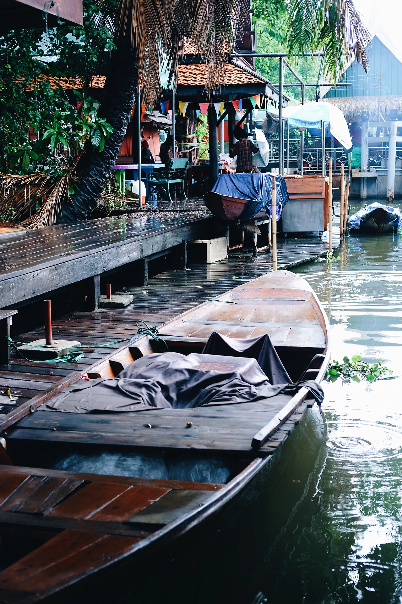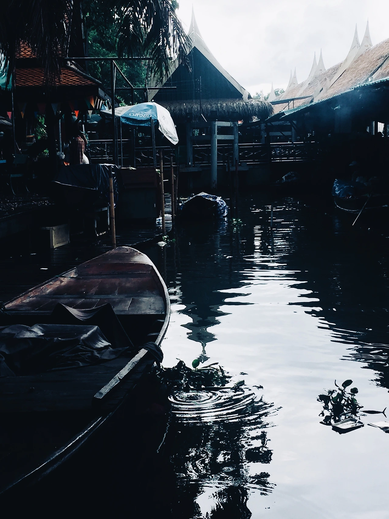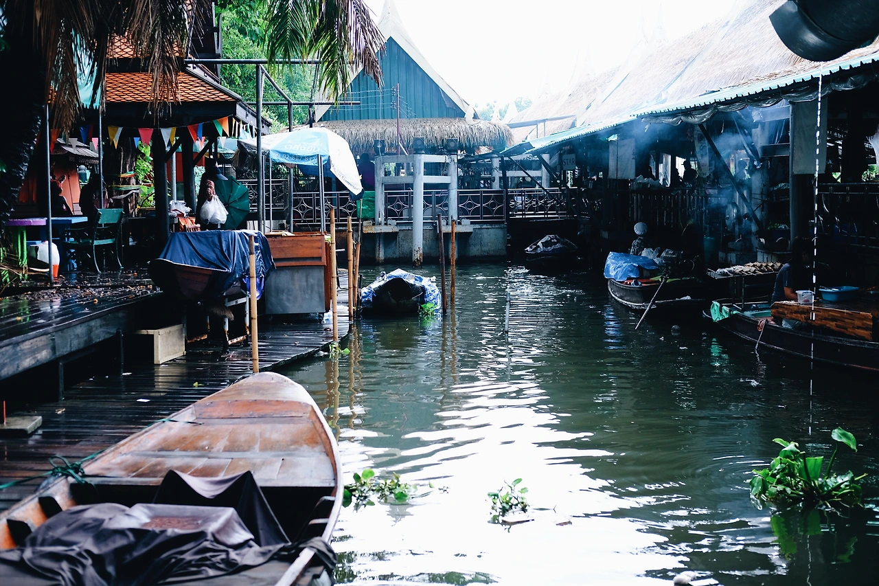 택시를 타고 오는 도중에도 비는 왔다가 그쳤다가를 반복했다. 플로팅 마켓 입구에 도착해서도 반갑다는 듯 비가 우렁차게 나를 맞아주었다. 생각해보니 사실 이번 방콕 여행 동안 비를 마주하는 일이 잦았다. 친구들과 야시장에 갔을 때도 마찬가지였다. 여행 중이라 다소 성가실 수 있음에도 불구하고, 그리 걸리적 거리지 않은 것은 조급한 마음으로 많은 곳에 다니고자 한 게 아니라 찬찬히 여유롭게 여행할 수 있었던 시간적 여유가 존재했기 때문이리라.