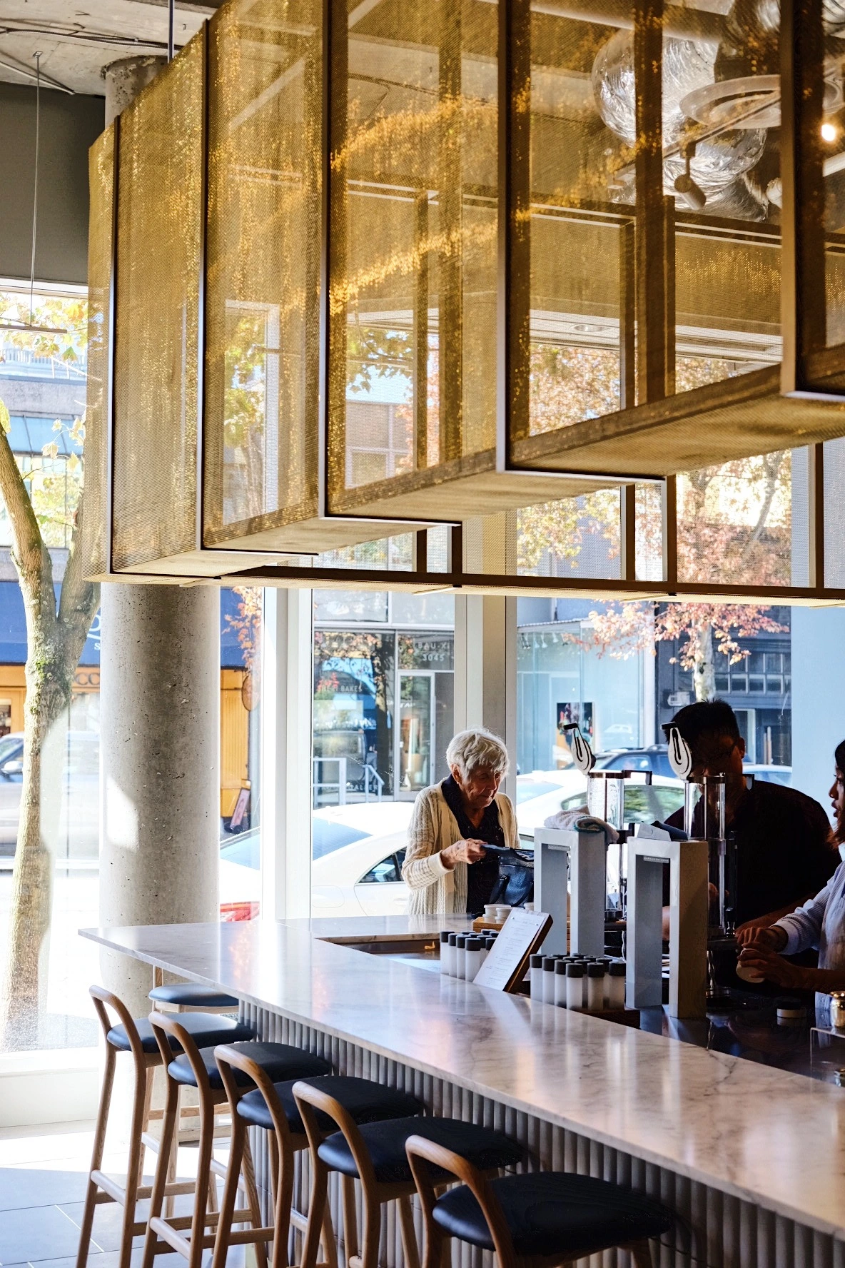 밴쿠버에서 가장 유명한 조명 아티스트인 Matthew McCormick이 디자인한 멋진 조명 아래, 친구와 나는 입에서 살살 녹는 디저트를 먹으며 몇 년 동안 못 본 사람들처럼 수다 보따리를 여럿 풀어냈다. 은은한 조명과 넓은 카페의 실내 덕분인지 대화는 끊일 줄 몰랐고, 소프트 오프닝이라 일찍 마감하는 그들이 의자와 테이블을 정리할 때야 비로소 자리를 뜰 수 있었다. 평소 동네 주변 가까이에 맛있는 커피숍이 없어 편한 대로 스타벅스만 애용하곤 했는데, 이젠 멋지고 맛도 일품인 베이커리 카페가 있어 자주 애용할 것 같은 기분 좋은 예감이 든다.