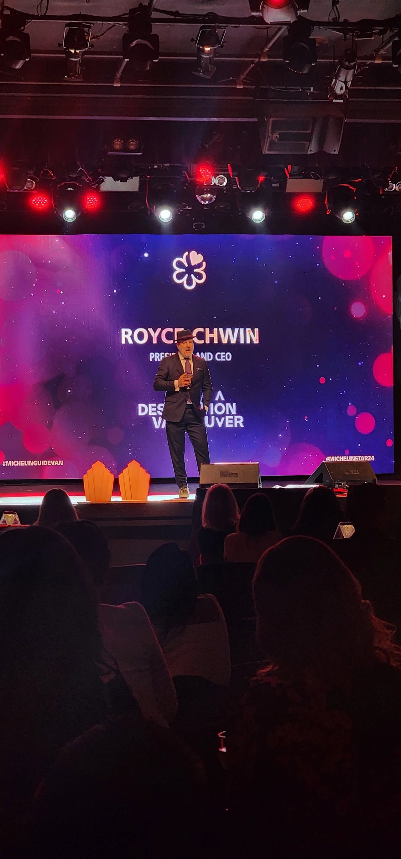 리셉션이 시작되고 한 시간쯤 지났을 때 쇼호스트인 한국계 캐나다인인 Mijune Pak이 무대에 올라 사회를 보기 시작했다. 밴쿠버 태생인 미준 님은 'Follow Me Foodie'라는 푸드 블로거로 시작하여 라디오 및 텔레비전에 출연해 왔고 'Top Chef Canada' 및 'Iron Chef Canada' 등 캐나다의 요리 경연 프로그램의 심사위원으로 활동하고 있다. 다음으로 미슐랭을 주최하는 밴쿠버 관광 정부 기관인 'Destination Vancouver'의 대표님의 인사 말씀을 곁들인 후, 본격적인 시상식이 시작되었다. 새로 생긴 카테고리인 Young Chef Award에는 일본 오마카세 쉐프인 Yoji Masuda가 수상했고, 바텐더 어워즈는 미슐랭 1 스타 식당 'Kissa Tanto'의 Fraser Crawford에게 돌아갔다.