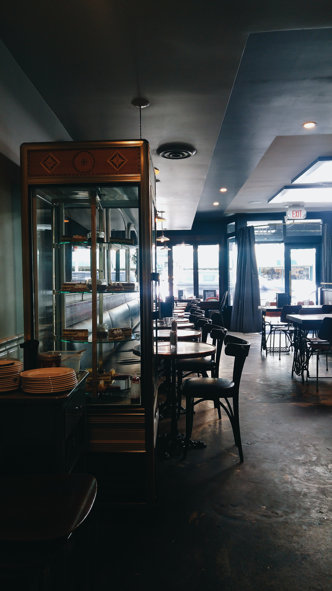 창가에 앉아 있던 커플들이 나가는 찰나를 목격한 나는, 이 기회를 놓칠 세라 싶어 얼른 서버에게 공손하게 창가 자리로 앉겠다고 부탁했고, 그는 흔쾌히 그리고 재빠르게 전 손님이 남긴 흔적들을 지워주었다. 창가 자리를 선호하는 이유는 자연스러운 빛이 스며들어 사진 찍을 때 용이하다는 점 이외에도 사람 구경 하는 재미가 쏠쏠하기 때문이다. 오랜만에 낯을 비춘 햇빛이 반가운 건 나 뿐이 아닌 듯, 밴쿠버 사람들도 한껏 반팔을 꺼내 입고 선글라스로 멋을 낸 모습이었다.
