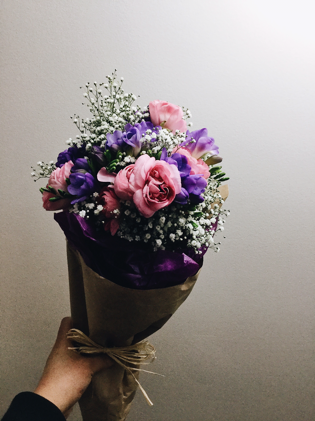 한국에 있을 때 프리지아를 좋아했었는데 캐나다에 와서는 한 번도 산 적이 없다는 것을 깨달은 탓일까, 오늘은 왠지 프리지아의 향기가 계속 나를 이끌었다. 그리하여, 보라색 프리지아와, 연한 핑크색의 라넌큘러스 (Ranunculus), 그리고 없어서는 안 될 안개꽃 한 다발을 사서 집으로 돌아왔다.