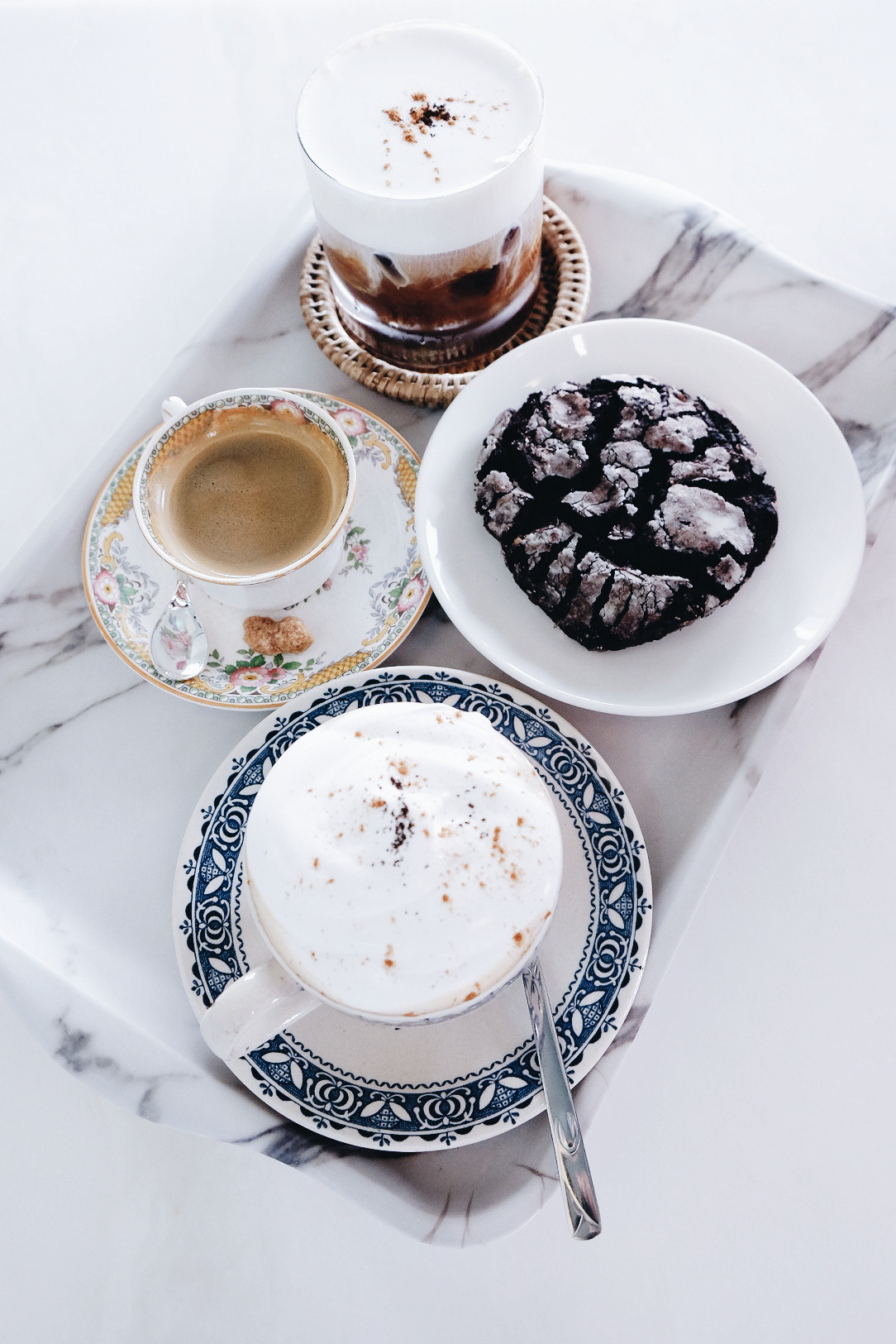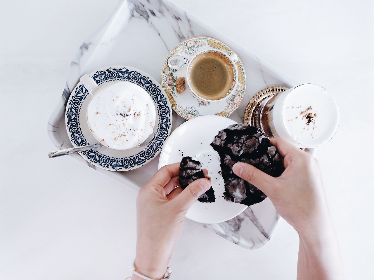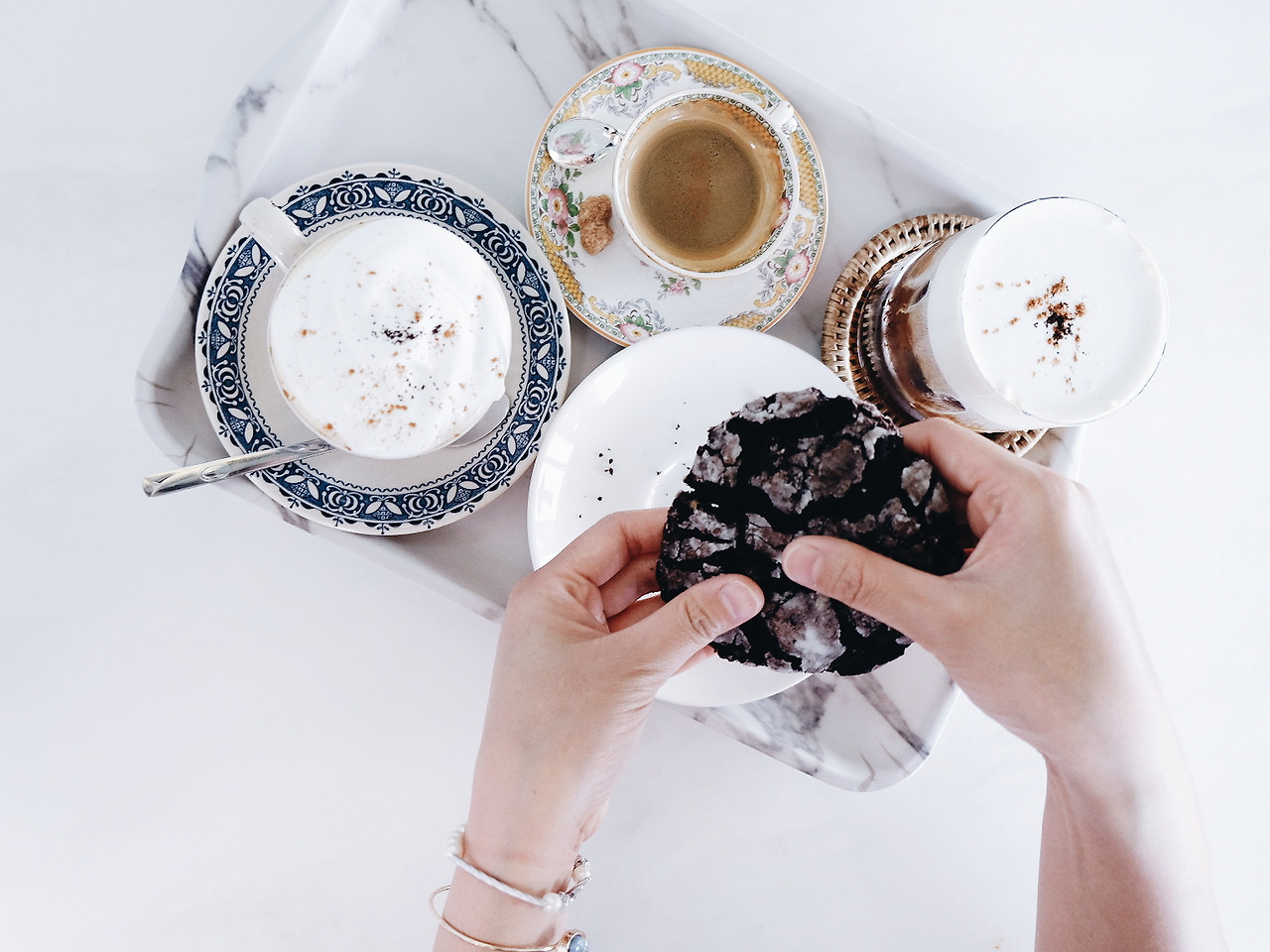 눈 앞에서 몽글몽글한 휘핑크림이 얹어지는 커피를 보며, 사탕을 먹고 싶어 하는 아이처럼 곧 맛보게 될 씁쓸하고도 달콤한 커피를 초조하게 기다린 지 몇 분이 지난 후, 드디어 우리가 주문한 메뉴가 나왔다. 3층의 하얀 대리석 테이블에 앉은 우리는 커피에 예의를 다할 수 있게 최대한 빨리 사진을 찍은 후 커피를 한 모금씩 마시기 시작했다. 내가 주문한 따뜻한 아인슈페너 위에 얹어진 달콤한 휘핑크림의 맛은 기대한 그 이상이었다. 왜 친구가 이 카페를 입이 마르지 않도록 칭찬해 온 건지에 대한 이유가 뼈저리게 이해가 되는 순간이었다. 달달한 휘핑크림 사이로 삐져나오는 씁쓸한 커피의 풍미가 조화로운 대조를 잘 이루고 있었다. 친구가 시킨 쿠키를 게 눈 감추듯 먹어치운 먹성 좋은 우리는, 수다 꽃을 한참 피운 후 범고래 다방에 다음을 기약하며 집으로 돌아왔다.